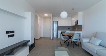Mit ihrem eleganten, modernen Design, hellen Farbtönen und hochwertigen Materialien bietet diese helle und einladende Wohnung 2 Schlafzimmer mit Einbauschränken, 2 Badezimmer sowie einen großzügigen Wohn- und Essbereich mit einer völlig ausgestatteten offenen Küche.