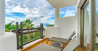 Besonderes Highlight ist die großzügige private Terrasse von 38 m² mit atemberaubendem Blick auf den Atlantik, die Insel La Gomera sowie den Abama-Golfplatz, der zu den besten Europas zählt. Ein perfekter Ort zum Entspannen und Genießen des ganzjährig milden Klimas.