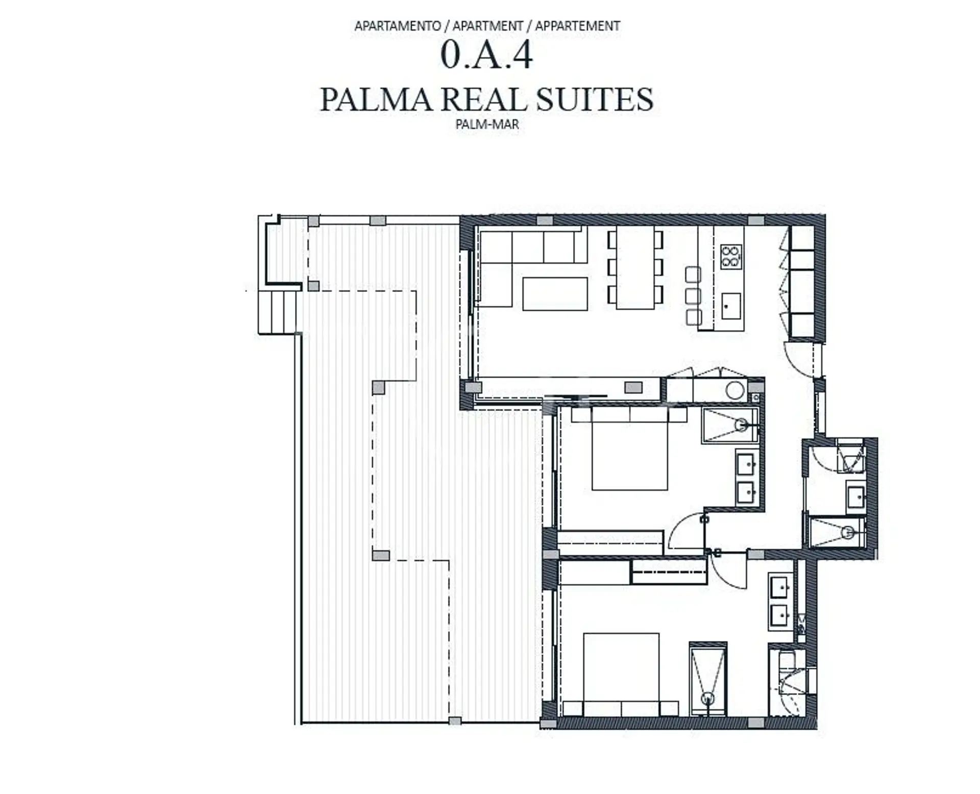 This luxurious ground floor property is located in the exclusive Palma Real Suites complex in Palm-Mar, a well-established residential area known for its peaceful surroundings and proximity to the sea.