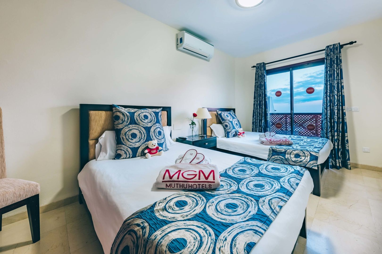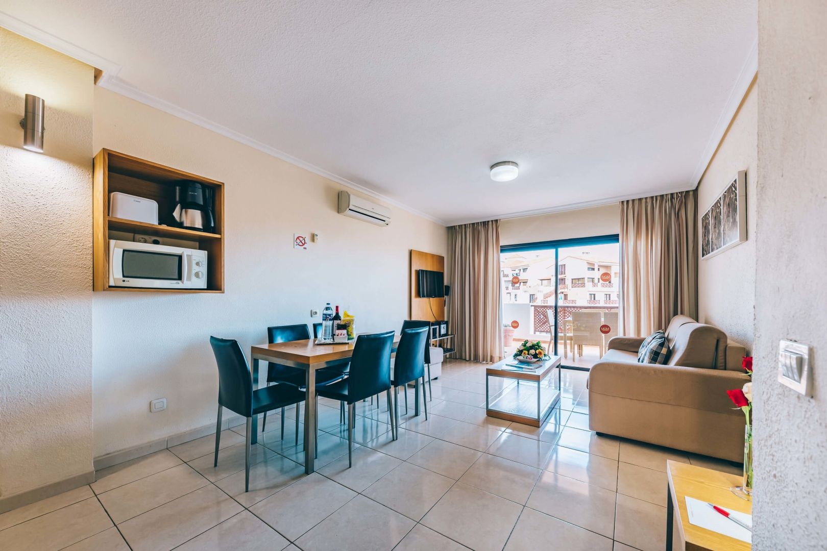 You can choose between studios, 1 or 2 bedroom apartments with views of the gardens or the swimming pool or the sea.