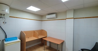 The premises include a spacious main room, a smaller separate room, and a bathroom with a shower. It is also equipped with air conditioning for added comfort.
