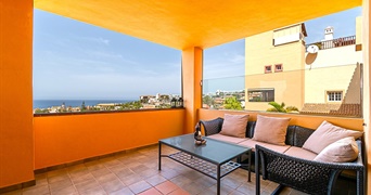 Discover this fantastic 2-bedroom penthouse in the first phase of Terrazas del Duque. This stunning apartment features 2 spacious bedrooms with built-in wardrobes, 2 luxurious bathrooms with double sinks and bathtubs, a bright living area with direct access to a covered terrace boasting breathtaking sea views, a fully fitted and equipped kitchen, and a separate utility room.