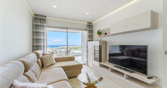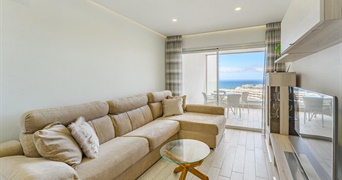 The property offers two spacious bedrooms, two full bathrooms, and a cozy living room with an open-plan kitchen featuring contemporary design. It stands out for its bright 13 m² terrace, ideal for enjoying the stunning ocean views and the pleasant climate all year round.