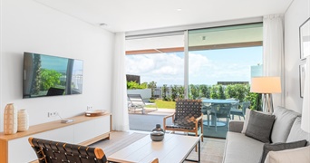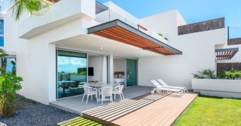 Discover this modern luxury property, fully furnished and equipped, located in the exclusive Los Jardines de Abama residential complex. Situated on the ground floor, it offers spectacular views of the sea and the golf course, combining comfort, design and natural surroundings.