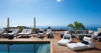 DONDE DISEÑO Y NATURALEZA SE ENCUENTRAN - Top Immo presenta esta villa de diseño con increíbles vistas tanto al mar como a la montaña, lo que la convierte en un oasis de privacidad y tranquilidad. Se encuentra en una ubicación absolutamente única en el sur de Tenerife, en la parte más alta de la impresionante zona del Roque del Conde. Su arquitectura moderna y de vanguardia está enclavada en un sorprendente paisaje natural. La villa está diseñada para gozar de unas vistas panorámicas al océano. En la parte trasera de la villa, le espera el famoso Roque del Conde. Este impresionante paisaje montañoso da una sensación de paz y reclusión, a pesar de estar a pocos minutos del bullicio de la vida en la playa.