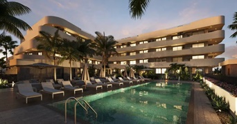 El nuevo complejo Carena Waves destaca por sus amplias terrazas y sus zonas exteriores ajardinadas con una piscina comunitaria de 80 m², perfecta para disfrutar del excelente clima de la zona.