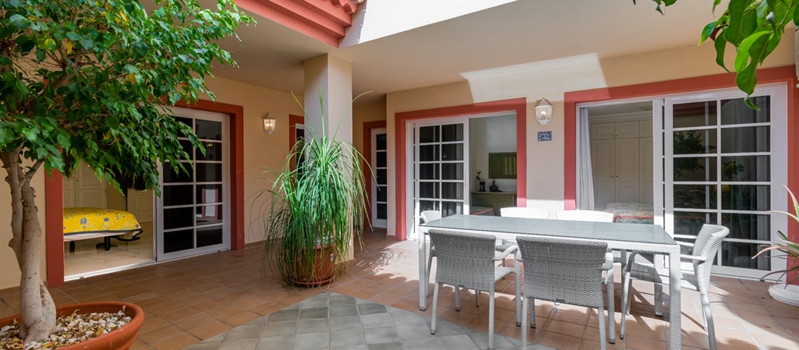 Uno de los principales atractivos de la propiedad es su encantador patio interior y su amplia terraza delantera, el lugar perfecto para disfrutar del sol y de las vistas.