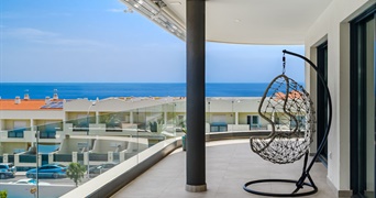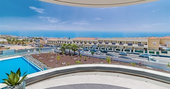 Questo attico si distingue in particolare per la sua straordinaria terrazza d’angolo di 69 m², dalla quale si godono splendide viste panoramiche sul mare e sulla costa di Costa Adeje, oltre che sull’area piscine e sui giardini del complesso. Tali viste si estendono anche alla zona giorno e alle camere, rafforzando la sensazione di spazio e il legame con l’ambiente circostante.