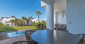 Эта великолепная квартира класса люкс площадью более 100 м2 была спроектирована так, чтобы подарить вам незабываемые впечатления от отдыха на эксклюзивном курорте Лас-Террасас-де-Абама.