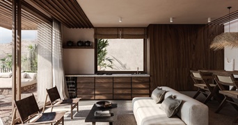 Небольшие независимые коттеджи с гостиничным сервисом и боковым видом на море, которые выделяются своей уединенностью и спокойствием. Дизайнеры полностью интегрировали их в природные скалы, добившись гармоничного слияния с окружающей средой. В каждом из них есть частный бассейн с подогревом.