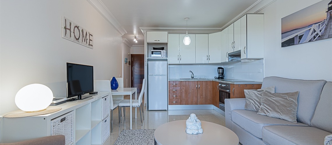 Schöne Wohnung mit zwei Schlafzimmern zu vermieten, mit Einbauküche und sehr geschmackvoll eingerichtet. Diese Wohnung hat eine sonnige Terrasse den ganzen Tag und mit Pool und Meerblick von Palm-Mar.