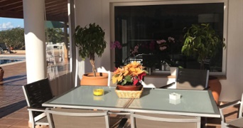 Das Solarium, das den Swimmingpool umgibt, bietet Ihnen einen fantastischen Blick auf das Meer, die Südküste und die Berge. Die Veranda ist die Chill-Out-Ecke des Hauses und ermöglicht es Ihnen, die erstaunlichsten Sonnenauf- und -untergänge zu genießen, während Sie Ihren Kaffee oder ein köstliches Gin Tonic trinken.
