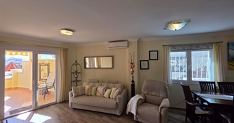 Einer der großen Pluspunkte des Apartments ist die großzügige Terrasse mit offenem Meerblick und Sonne den ganzen Tag über, die zusätzlich mit einer Markise ausgestattet ist, falls Schatten gewünscht wird. Dieser Außenbereich sorgt für viel Tageslicht im Innenraum und stellt eine sehr angenehme Erweiterung des Wohnraums dar – ideal, um das Leben im Freien und das außergewöhnliche Klima dieser Inselregion das ganze Jahr über zu genießen.