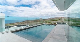 Para privilegiar las vistas al mar, la planta principal (compuesta por el salón , la cocina y la terraza con la piscina privada ) está situada en la primera planta.