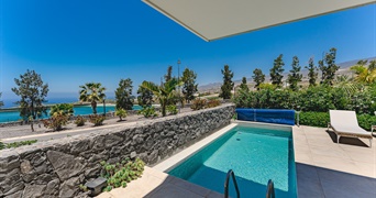 La zona exterior cuenta con un cómodo y amplio garaje, y una piscina climatizada que se puede disfrutar en cualquier época del año y desde la que se pueden admirar hermosas vistas al mar y a la isla de La Gomera. También dispone de un agradable y armonioso jardín que cuenta con un sistema de riego automático.