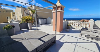 Ubicado en la parte alta del residencial Paraíso de Palm-Mar, esta propiedad realmente única surge de la fusión de dos áticos dúplex, ofreciendo un espacio muy amplio, luminoso y completamente renovado con materiales de alta calidad. Además de su diseño moderno y elegante, ofrece fantásticos exteriores con vistas panorámicas al mar.