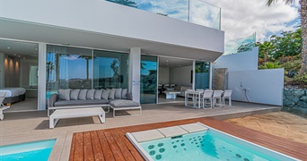 Fabuleux appartement de deux chambres avec piscine privée et jacuzzi à vendre à Baobab Suites, le magnifique hôtel 5 étoiles au design moderne au coeur de la région d'El Duque. Cet appartement offre une vue panoramique sur la mer de plain-pied et très lumineux. La terrasse extérieure et la plage sont plus grandes que les appartements voisins. L'intérieur est également plus spacieux que les appartements adjacents, puisqu'il n'y a pas de patio. Elle dispose d'une cuisine américaine, d'un grand séjour, de 2 chambres avec chacune sa propre salle de bain (l'une avec baignoire et douche, l'autre avec douche). Les deux chambres ont un accès direct à la terrasse et de grandes armoires encastrées. Toutes les chambres sont climatisées. De plus, Baobab dispose d'une réception 24 heures sur 24, de deux piscines chauffées, de trois restaurants, d'un room service, d'un service de nettoyage, d'un club enfants et d'un club sportif.