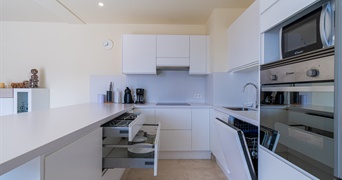 Gezellig appartement met drie slaapkamers te huur in La Caleta. Het appartement is verdeeld over twee niveaus. Er zijn een woonkamer met open keuken en toegang tot het zonnige terras op de begane grond, samen met een slaapkamer met een tweepersoonsbed en een badkamer met douche. Nog twee slaapkamers (een met een balkon) en twee badkamers bevinden zich op de bovenste verdieping. Dit appartement is modern en volledig uitgerust. Gemakkelijke toegang tot het appartement met de lift. Deze residentie ligt op 600 meter van het centrum van La Caleta en de promenade. Er is ook een groot zwembad met ligweide.