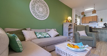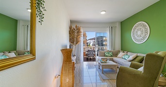 Het appartement is smaakvol ingericht en is geschikt voor maximaal 4 personen. Het bestaat uit een open keuken die verbonden is met de woonkamer, 2 slaapkamers en 1 badkamer. In de slaapkamers staan een- en tweepersoonsbedden, de badkamer heeft een ligbad. De keuken is volledig uitgerust met alle benodigde apparatuur. We hebben een patio/terras van 150m2 met uitzicht op het verwarmde zwembad van de residentie.