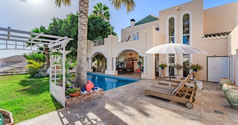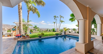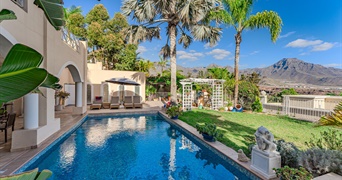 Welkom bij deze prachtige villa die momenteel te koop staat. Een juweel van tijdloze elegantie en exclusieve locatie in het hart van Golf Costa Adeje, een gebied dat bekend staat om zijn verfijning en rust. Deze vrijstaande woning werd gebouwd in 2001 op een royaal perceel van 974 m² en strekt zich uit over drie verdiepingen, die elk zorgvuldig zijn ontworpen. De architectuur wordt gekenmerkt door royale ruimtes, strakke lijnen en aandacht voor detail, terwijl het open panoramische uitzicht de schoonheid van de zuidkust van het eiland en de Atlantische Oceaan vastlegt. Het interieur combineert op harmonieuze wijze comfort en stijl en gaat elegant op in de natuurlijke omgeving van de golfbaan.