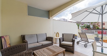 Maar het hoogtepunt van dit pand is ongetwijfeld het fantastische terras van 54 m2, waar u het hele jaar door kunt genieten van het uitstekende klimaat dat het gebied te bieden heeft. Deze grote buitenruimte biedt een gedeeltelijk uitzicht op zee, evenals meerdere mogelijkheden om te ontspannen, zonnebaden of buiten te eten.