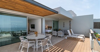 De woning beschikt ook over een indrukwekkend terras van 38 m2 met panoramisch uitzicht op de zee, het eiland La Gomera en de Abama Golfbaan en biedt een fantastische buitenruimte om het hele jaar door van te genieten.