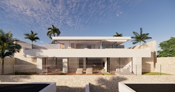 Ontworpen door het gerenommeerde architectenbureau Leonardo Omar, maakt deze villa deel uit van een exclusieve afgesloten gemeenschap die slechts drie moderne villa’s omvat. De architectuur combineert moderne esthetiek met innovatieve technologieën, terwijl het gebruik van natuurlijke texturen zoals steen en hout zorgt voor een perfecte integratie met de omgeving.