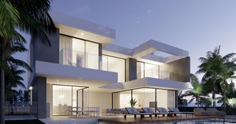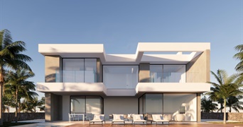 Gelegen op een perceel van 506 m², beslaat deze indrukwekkende woning 310 m² en heeft drie verdiepingen die toegankelijk zijn via een lift of zwevende trappen. Het open ontwerp verbindt de woon- en eetruimtes met een minimalistische, volledig uitgeruste keuken met een groot kookeiland en hoogwaardige apparatuur. Grote schuiframen zorgen voor een naadloze overgang tussen binnen- en buitenruimtes.