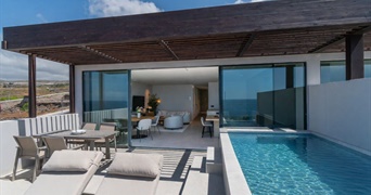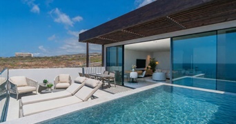 Buiten vormt het ruime privéterras een van de belangrijkste troeven, met prachtig frontaal zeezicht en de ideale plek om van het buitenleven te genieten, met onvergetelijke zonsondergangen over La Gomera als achtergrond. Het appartement beschikt bovendien over een privézwembad, wat bijdraagt aan het gevoel van privacy en exclusiviteit.